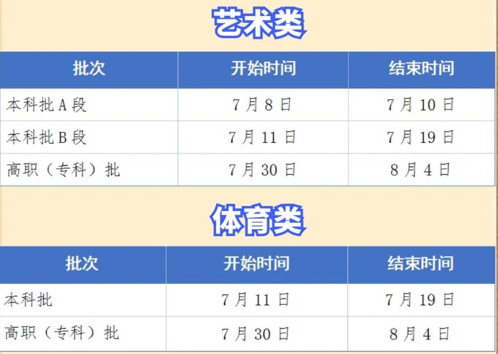 (1)艺术类本科批A段→(2)艺术类本科批B段→(3)兼报的普通类本科提前批C段→(4)兼报的普通类本科批→(5)艺术类高职(专科)批→(6)兼报的普通类高职(专科)提前批→(7)兼报的普通类高职(专科)批。