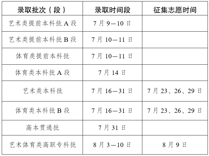 2025云南专科批录取时间安排如下: